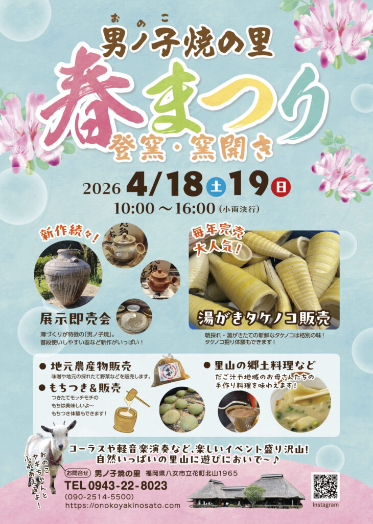 男ノ子焼の『新作』を多数展示販売❗️他にも地元農産物販売、湯がきタケノコ販売、タケノコ掘り体験、もちつき&販売などイベント盛り沢山!