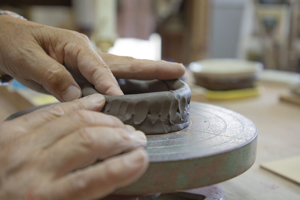 ろくろ体験のほか、手びねり体験(紐づくりやたたらづくり)も行っております。